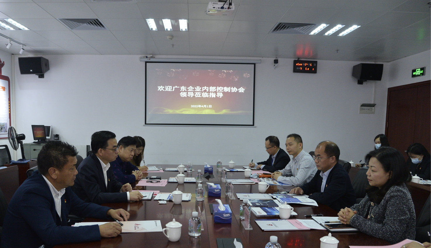 4月1日上午,广东省企业内部控制协会党支部书记、常务副会长兼秘书长邱银河一行来访米兰手机登录入口,招标中心党委书记、董事长钟青林,党委委员、纪委书记徐惊群,党委委员、副总经理邹吉炎及相关人员会见邱银河一行。