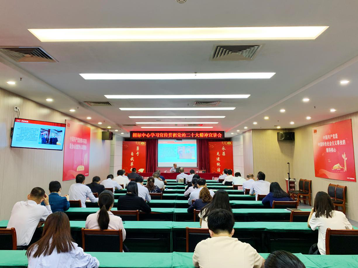 钟青林紧扣党的二十大报告原文,重点围绕党的二十大关于国资国企改革的内容进行解读,并结合实际,就如何深入学习贯彻党的二十大精神,推动新时期招标中心高质量发展,对全体干部职工提出新的具体要求。