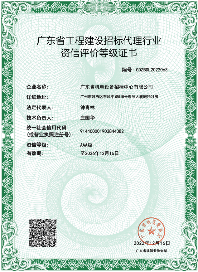 近日,经过广东省建筑业协会的评审,米兰手机登录入口(以下简称招标中心)获得协会颁发的《广东省工程建设招标代理行业资信评价等级证书(AAA级)》。