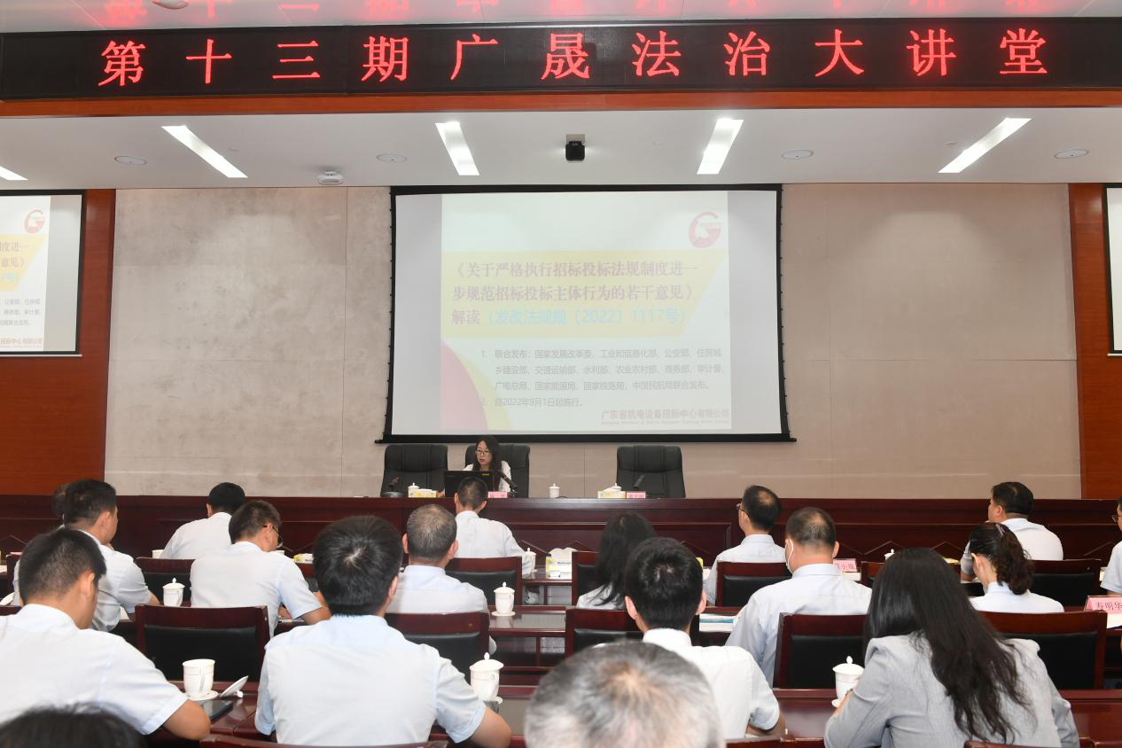 7月14日,米兰手机登录入口(以下简称招标中心)受邀到广东省广晟控股集团有限公司(以下简称广晟控股)进行第十三期法治大讲堂授课交流,广晟控股党委委员、副总经理苏权捷及广晟控股集团总部、各一级企业相关人员参加了此次授课交流。