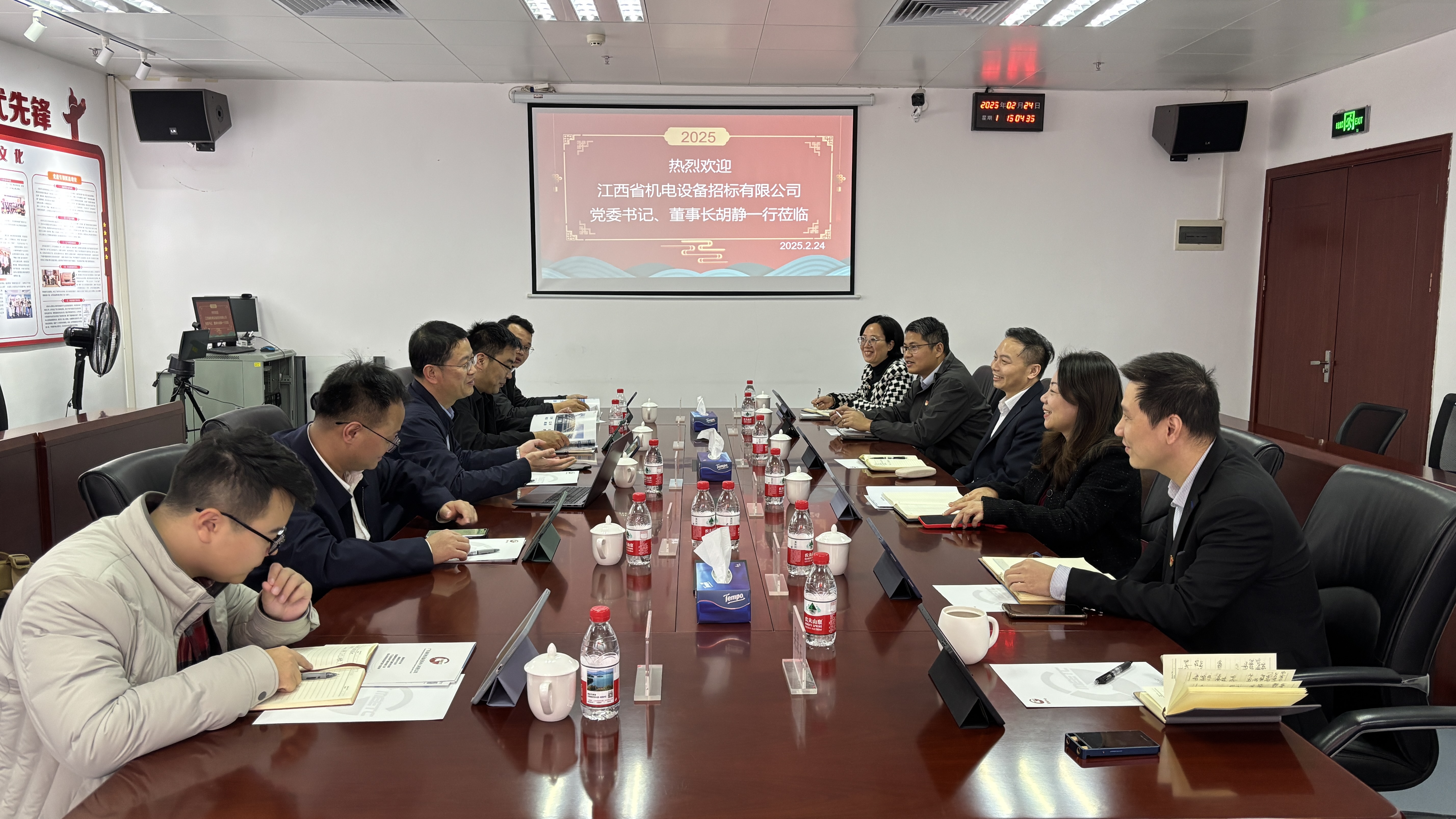 2月24日,江西省机电设备招标有限公司(以下简称江招公司)党委书记、董事长胡静一行莅临招标中心,双方围绕招标行业发展趋势、行业痛点难点、党风廉政建设、经营管理模式及信息化建设等进行了深入交流。